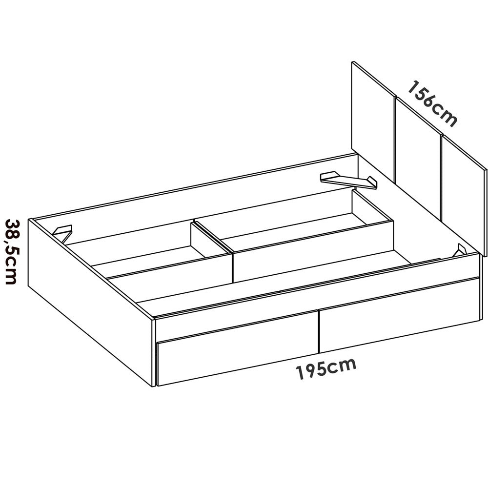 - Debajo de la cama se ubican 4 cajones grandes, perfectos para guardar edredones, almohadas y ropa de cama.