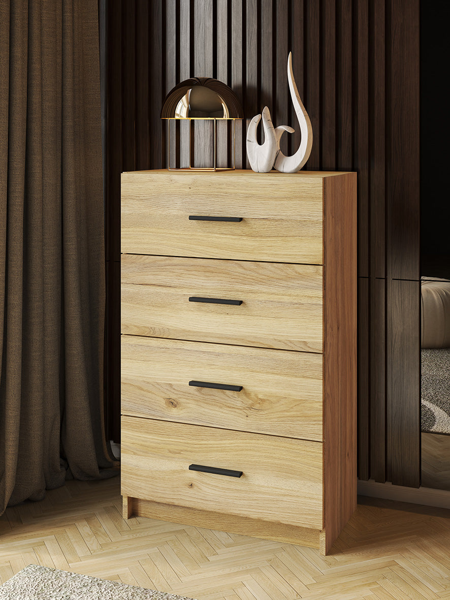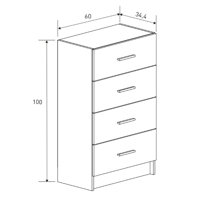 - Sinfonier 4 cajones aura sencilla y elegante, con tirador en negro que contrasta con el resto del mueble. También disponible la Cómoda AURA